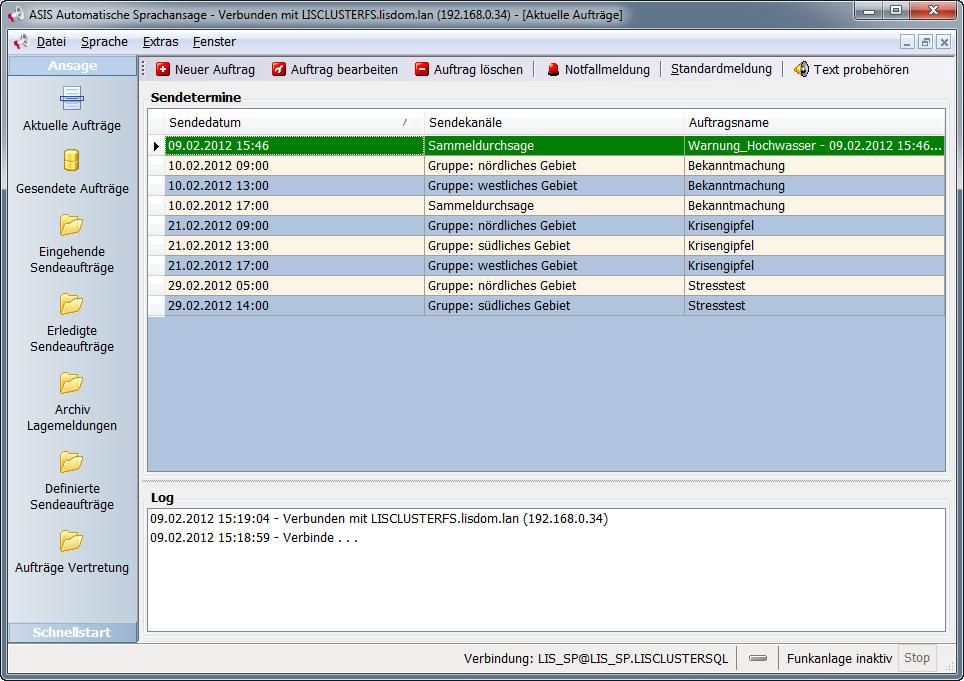 Die Informationen sind nur für bestimmte regionale Bereiche wichtig. In ASIS werden die vorhandenen Funkkanäle in Gruppen organisiert, zu den vorgegebenen Zeiten automatisch belegt und die Ansage übertragen.
