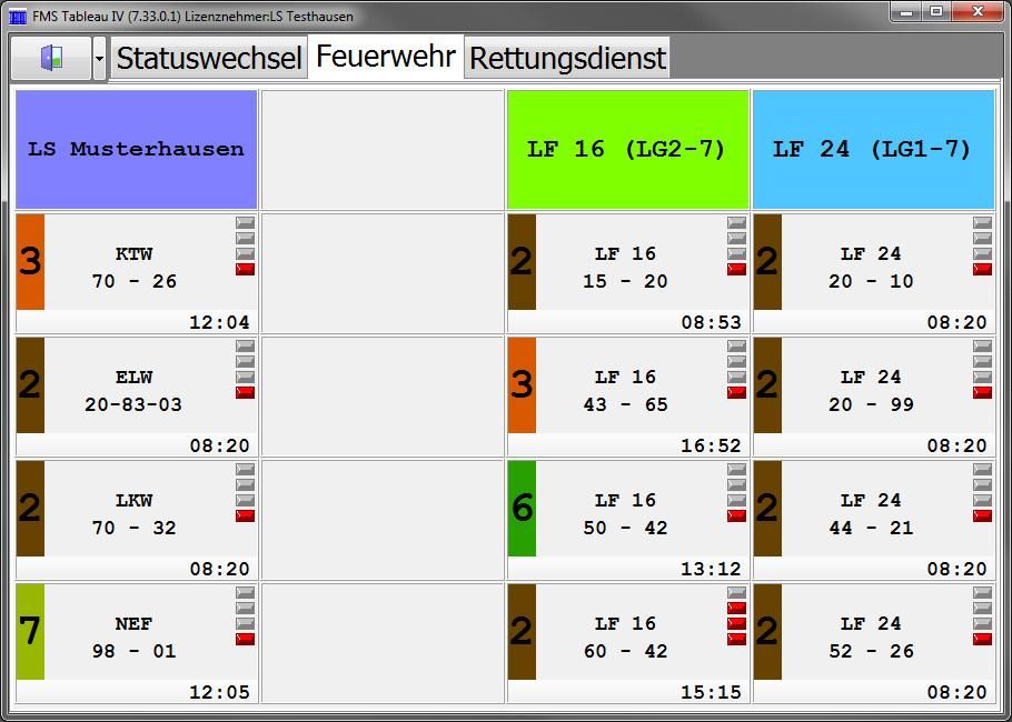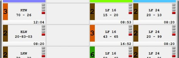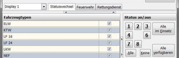 Einen schnellen Überblick über die eigenen Einsatzmittel - welches Fahrzeug in welchem Status - bietet die neue Großbildanzeige.