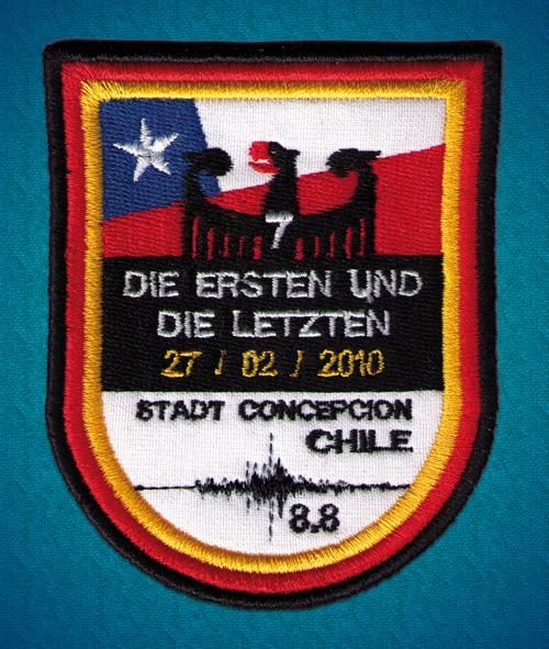 In Zusammenarbeit mit Angehörigen der 7. Kompanie in Concepcion (Deutsche Kompanie) erfolgte die Übersetzung ins Spanische. Das Bild zeigt ein Abzeichen der 7. Kompanie als Dank für die durchgehende Unterstützung zur Zeit des Erdbebens im Jahr 2010.