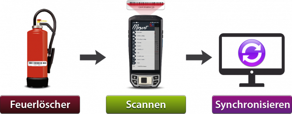 Bei einem Austausch von Feuerlöschern bedarf es lediglich der folgenden Schritte: Standort scannen - das Gerät kennt den dort angebrachten Feuerlöscher - Button „Tausch / Wartung“ betätigen - Barcode / RFID des neuen Feuerlöschers scannen - Fertig.
