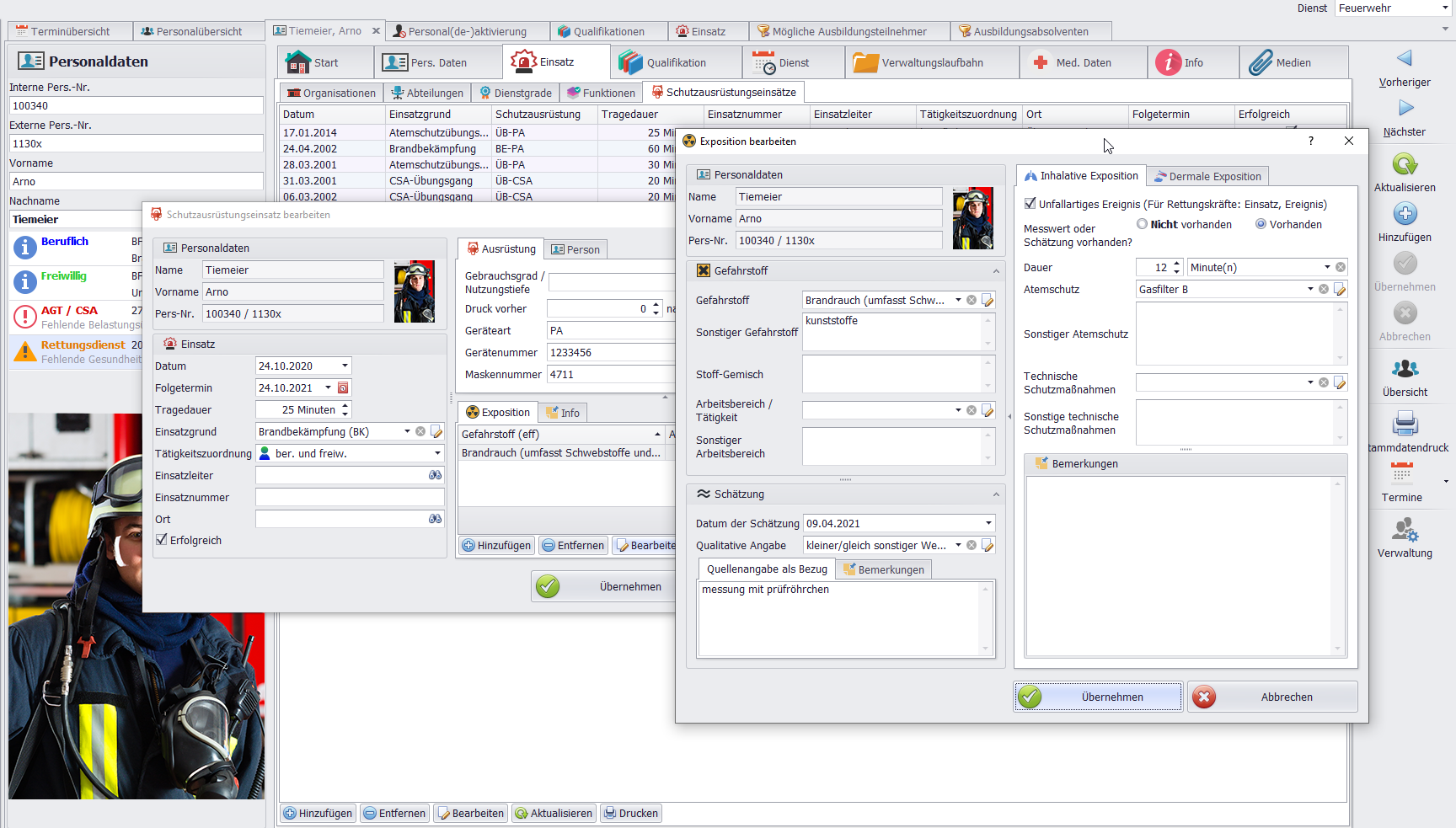 Gemäß gesetzlicher Vorgabe können für die in einem Einsatz eingesetzten Personen neben der Dauer auch Angaben zu der Exposition erfasst werden.