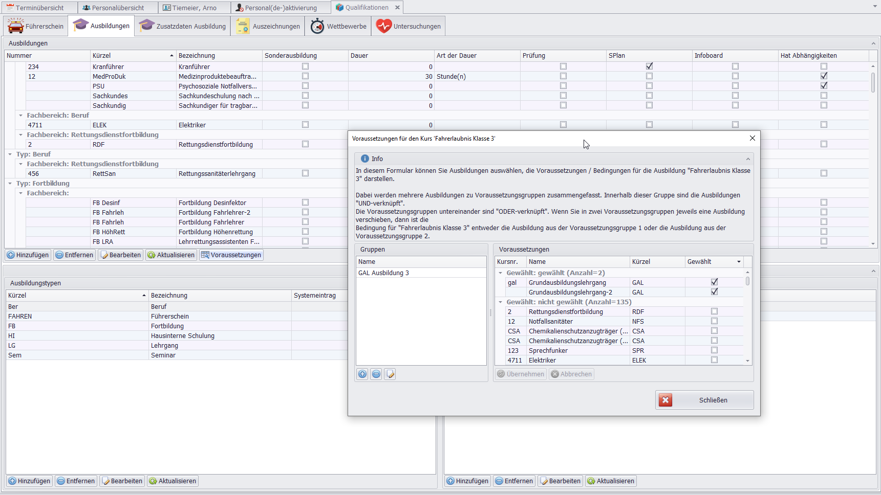 Aufgrund dieser Angaben kann dann mit den entsprechenden Reporten schnell ermittelt werden, wer diesen Lehrgang hat bzw. wer geeignet ist, an diesem Lehrgang teilzunehmen.